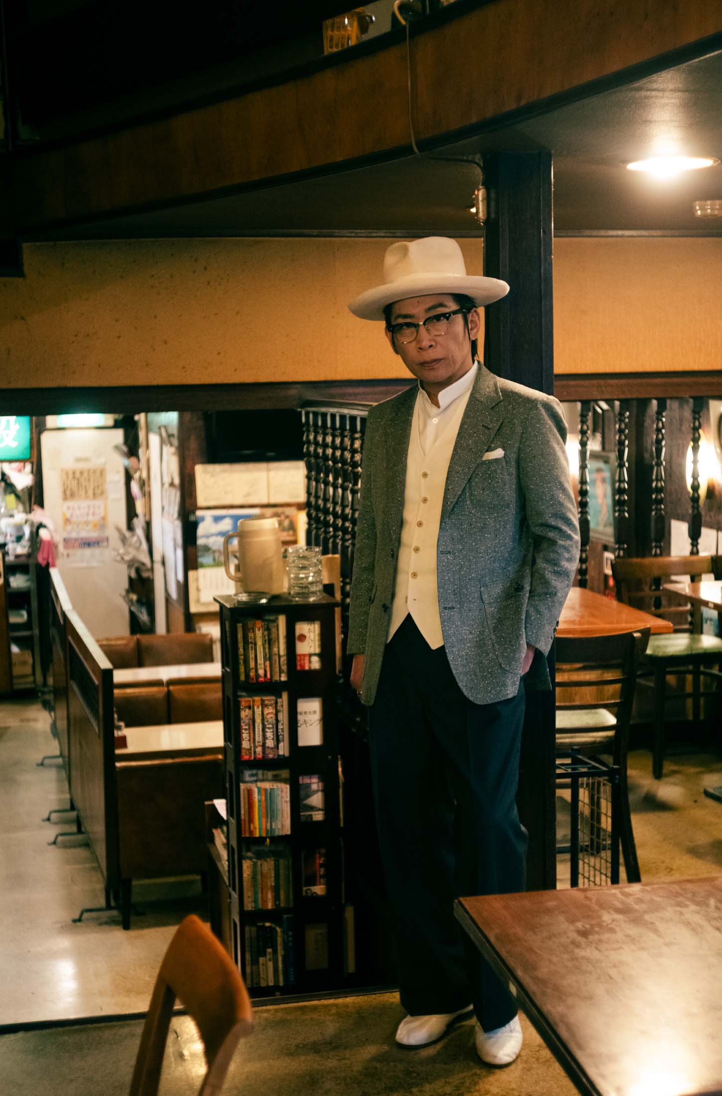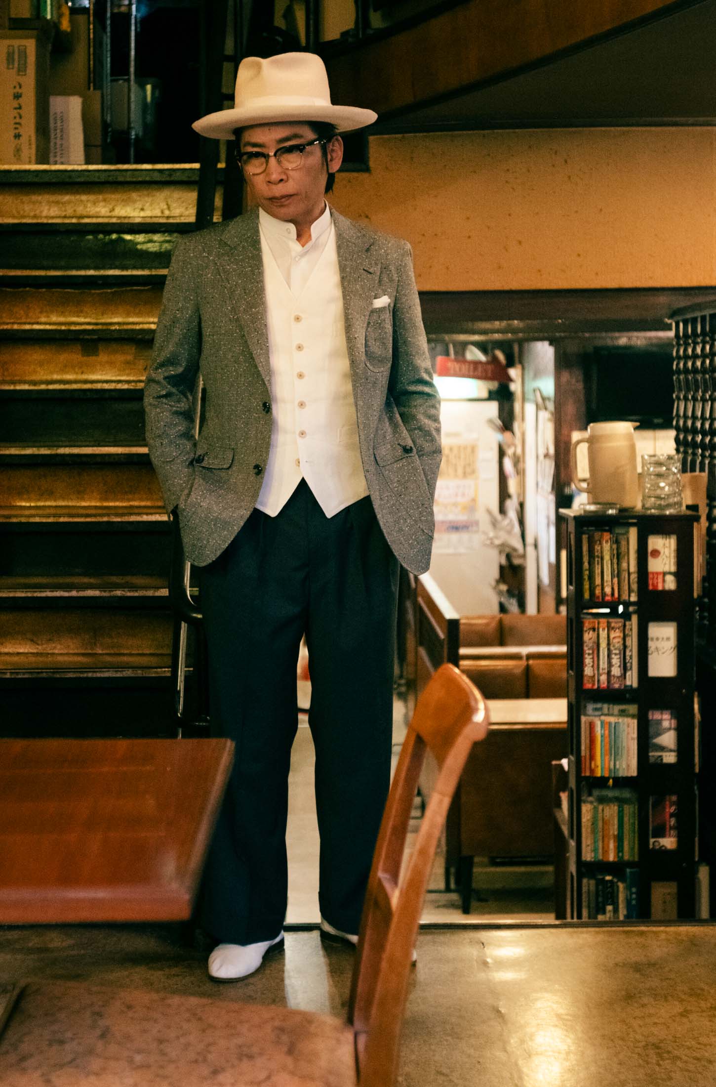 TROUSERS:GRAY SOLID, VEST:WHITE SOLID